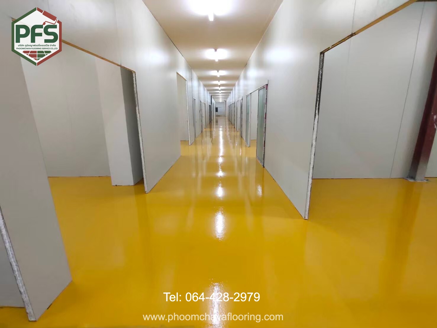 - ระบบงานฟลอฮาร์ด Floor hard ผิวงานมีความเงา มีทั้งแบบมีสี และ แบบใส ทำความสะอาดง่าย