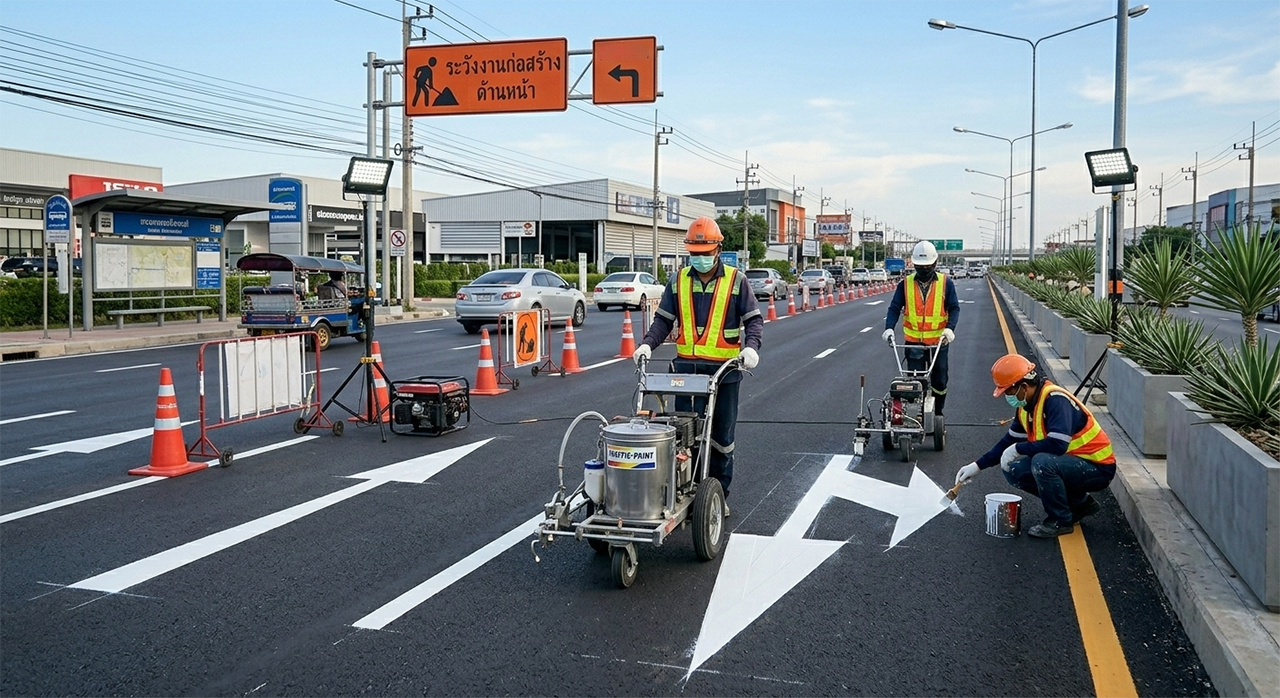 - ระบบงานตีเส้นจราจร มีทั้งแบบสำหรับภายใน และ ภายนอก