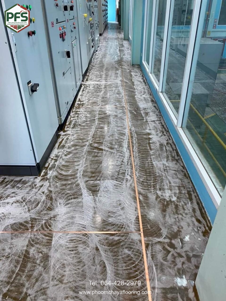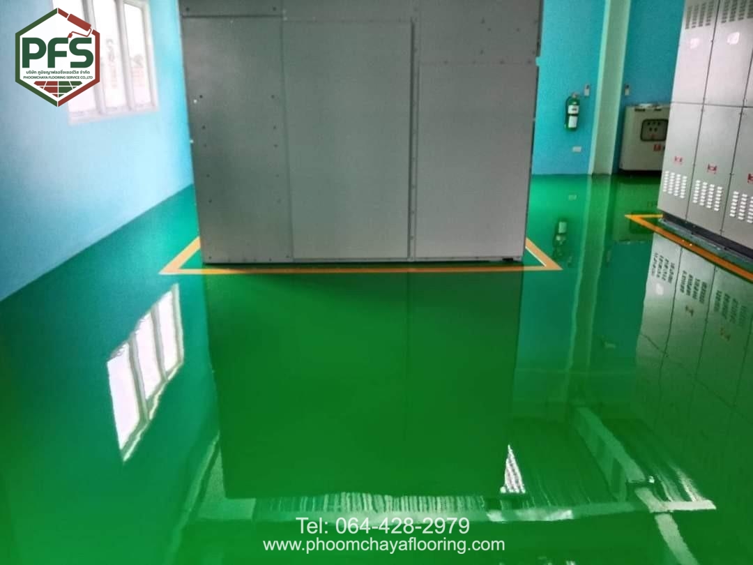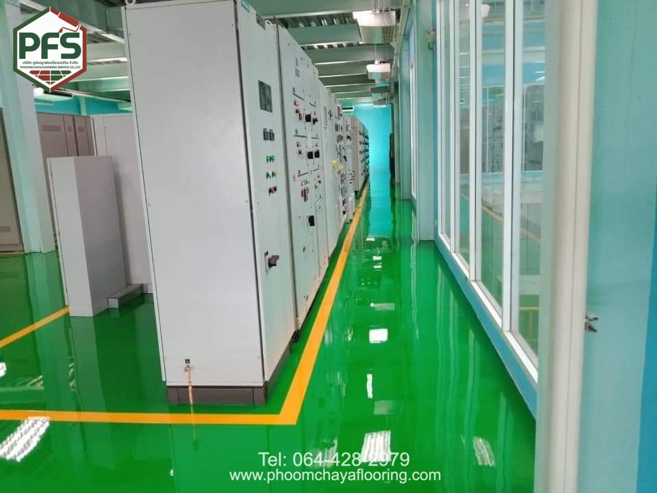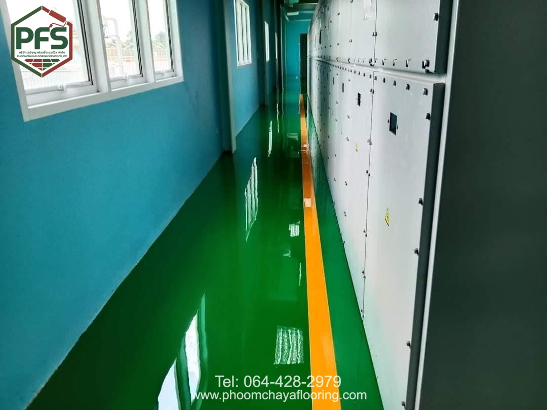 พื้นมีลักษณะ ผิวเรียบ ไร้รอยต่อ แข็งแรง และดูแลรักษาง่าย พร้อมคุณสมบัติป้องกันการสะสมฝุ่นและสิ่งสกปรก เหมาะสำหรับพื้นที่ที่ต้องการมาตรฐานความปลอดภัยสูง